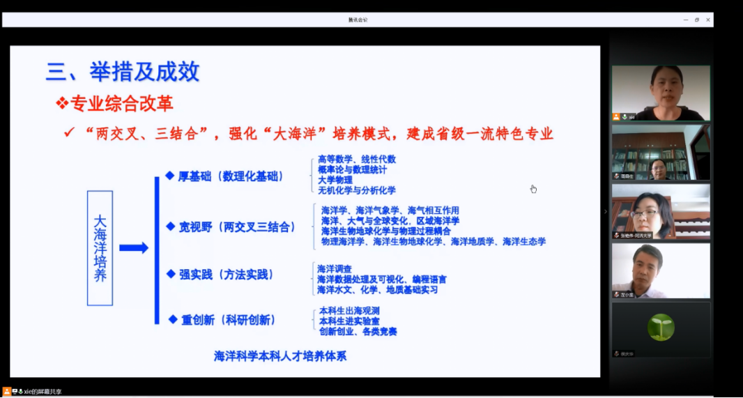 海洋科学专业目前为我校的省级一流专业建设点之一,该会议的召开,对于推动我校国家级一流专业建设的申报工作及专业认证工作具有积极的促进作用, 将有助于培养出更符合国家和社会需求的高质量海洋科学人才。