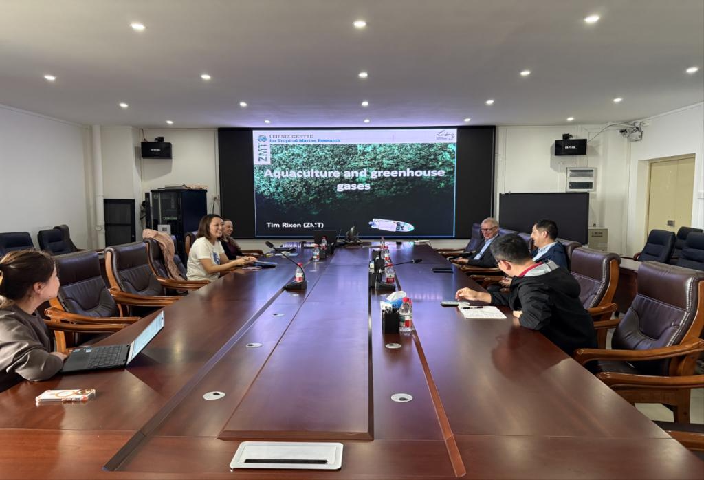 Tim Rixen博士首先介绍了莱布尼茨热带海洋研究中心的国际地位及其在碳循环系统方面的研究成果。他通过数据分析,展示了当前全球变暖的显著趋势,并阐述了碳循环在调控全球变暖过程中的关键作用。随后,他重点探讨了水产养殖对局部碳循环的潜在影响,提出了相应的减缓措施,并就未来可能面临的风险与挑战,对新一代青年学者寄予了深切期望。
