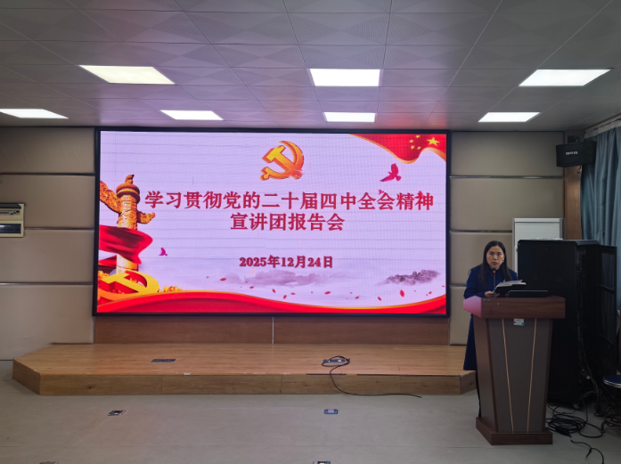 为深入学习贯彻党的二十届四中全会精神,全面准确领会党中央决策部署,12月24日下午,365英国上市公司在线组织召开专题理论学习会,邀请学校党委理论宣讲团成员、马克思主义学院副院长孙淑秋教授作题为《以党的二十届四中全会精神为指引,开启“十五五”奋进新征程》的专题辅导报告。学院全体党员100余人参加学习,会议由学院党委书记刘利群主持。