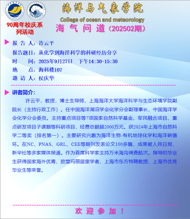 【学术报告通知】365英国上市公司在线“海气问道”(202502期)